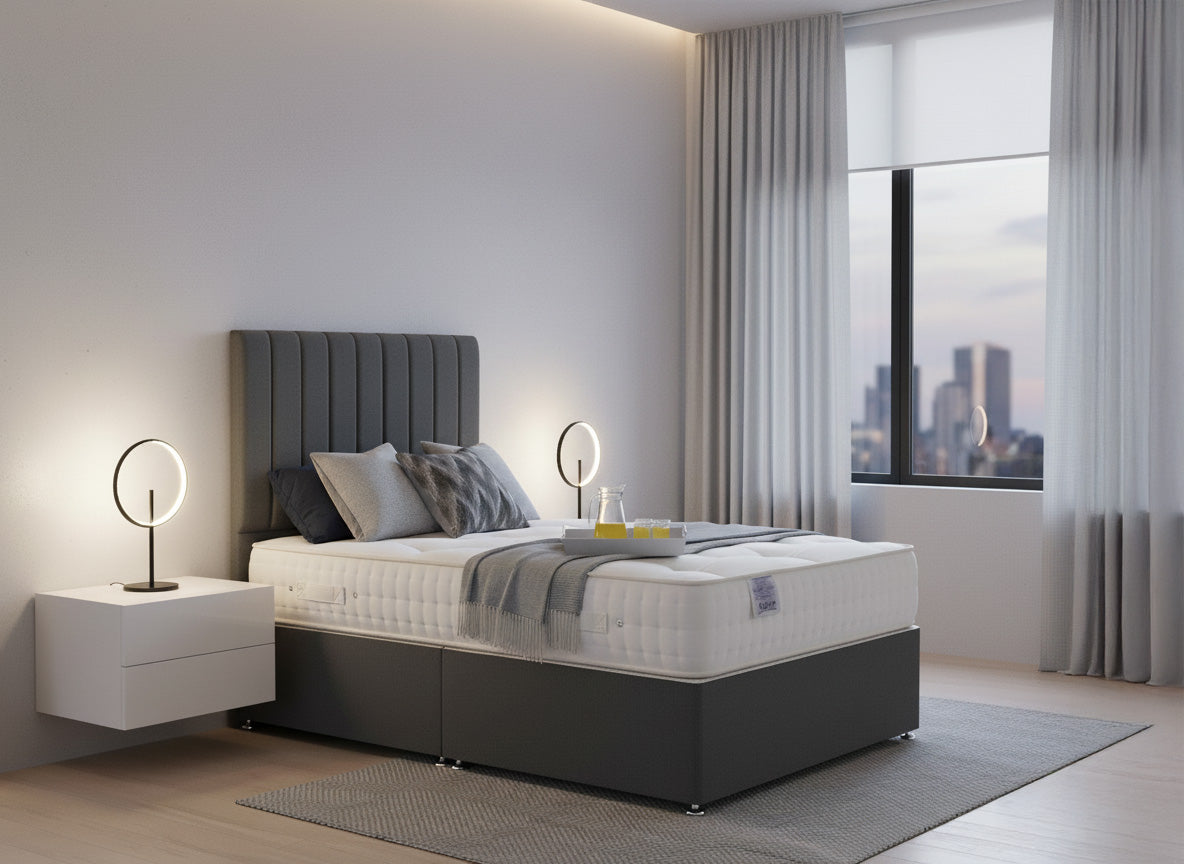 The Luxury Hotel 5000 Contract Divan Bed Set combines durability, comfort, and safety, making it ideal for both commercial and domestic use. Featuring a 28cm deep mattress with 5,000 pocket springs, it provides responsive support across the body. Layers of Intelligent Fibre, Intelligent Wool, and Slick add comfort, temperature regulation, and anti-allergy benefits, finished in a premium 100% viscose damask fabric with a hand-tufted design.