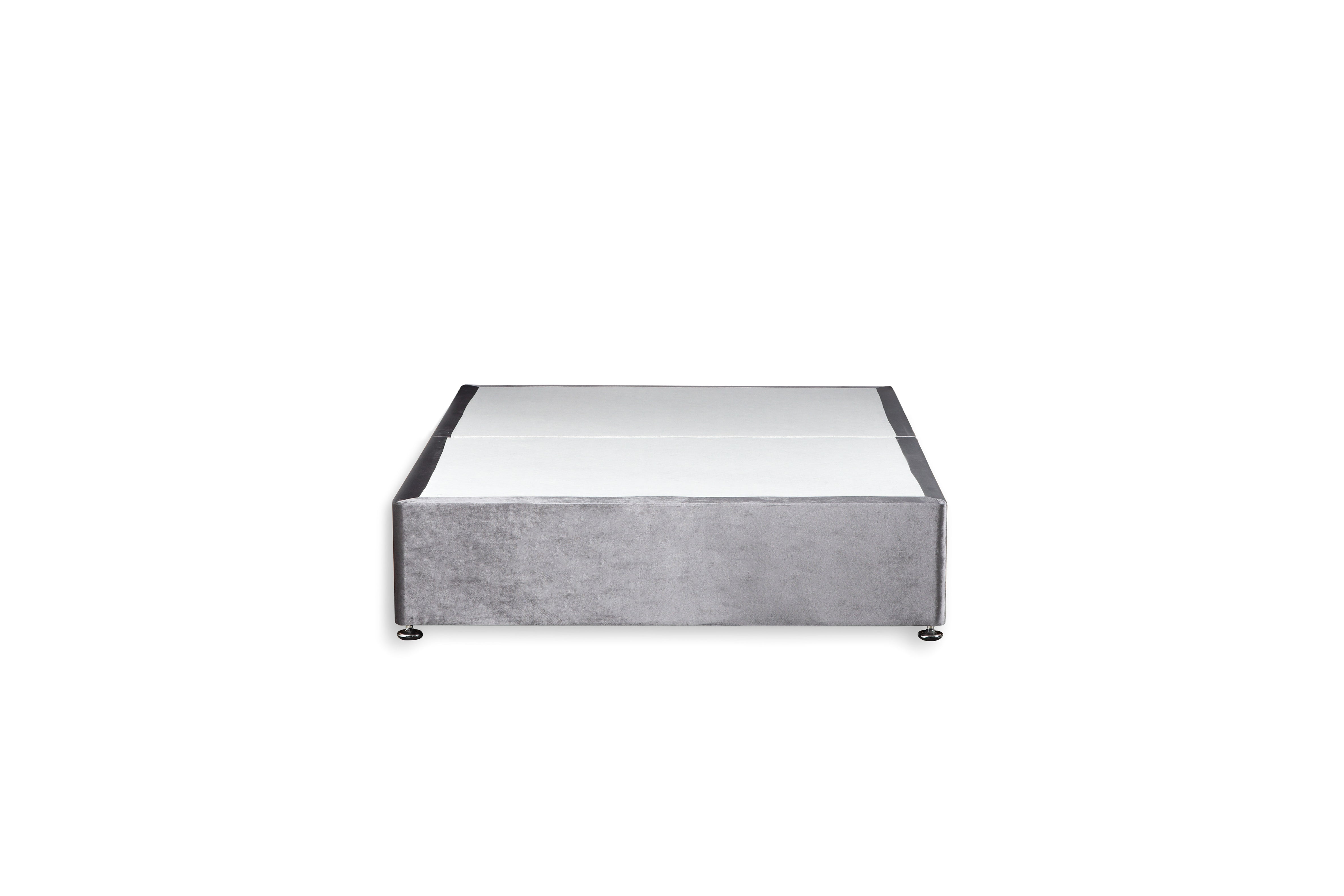 The Reinforced Divan Bed Base is built from premium white wood timber with a strengthened platform top and reinforced sides, making it twice as durable as standard bases. Upholstered in a choice of fabrics and finished with chrome-effect 2" glider feet, this base is ideal for both domestic and commercial use. Delivered as a ready-built base with linking bars for quick assembly.