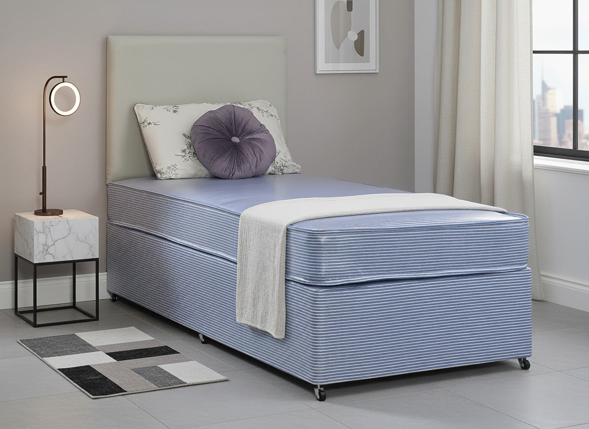 The Thornley Care Contract Divan Bed Set is designed for durability, comfort, and practicality, making it a popular choice for university accommodation, care homes, and nursing facilities. The 20cm deep mattress features a 13.5 gauge open coil spring unit with a 9 gauge full wire frame for extra support. Natural fillings provide medium comfort support, and the PVC-coated, water-resistant fabric makes it easy to clean and maintain.